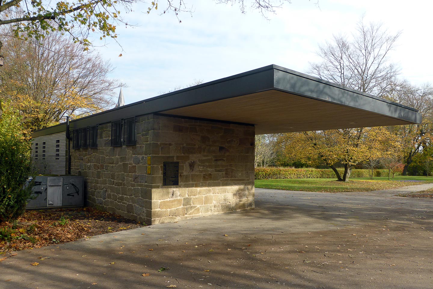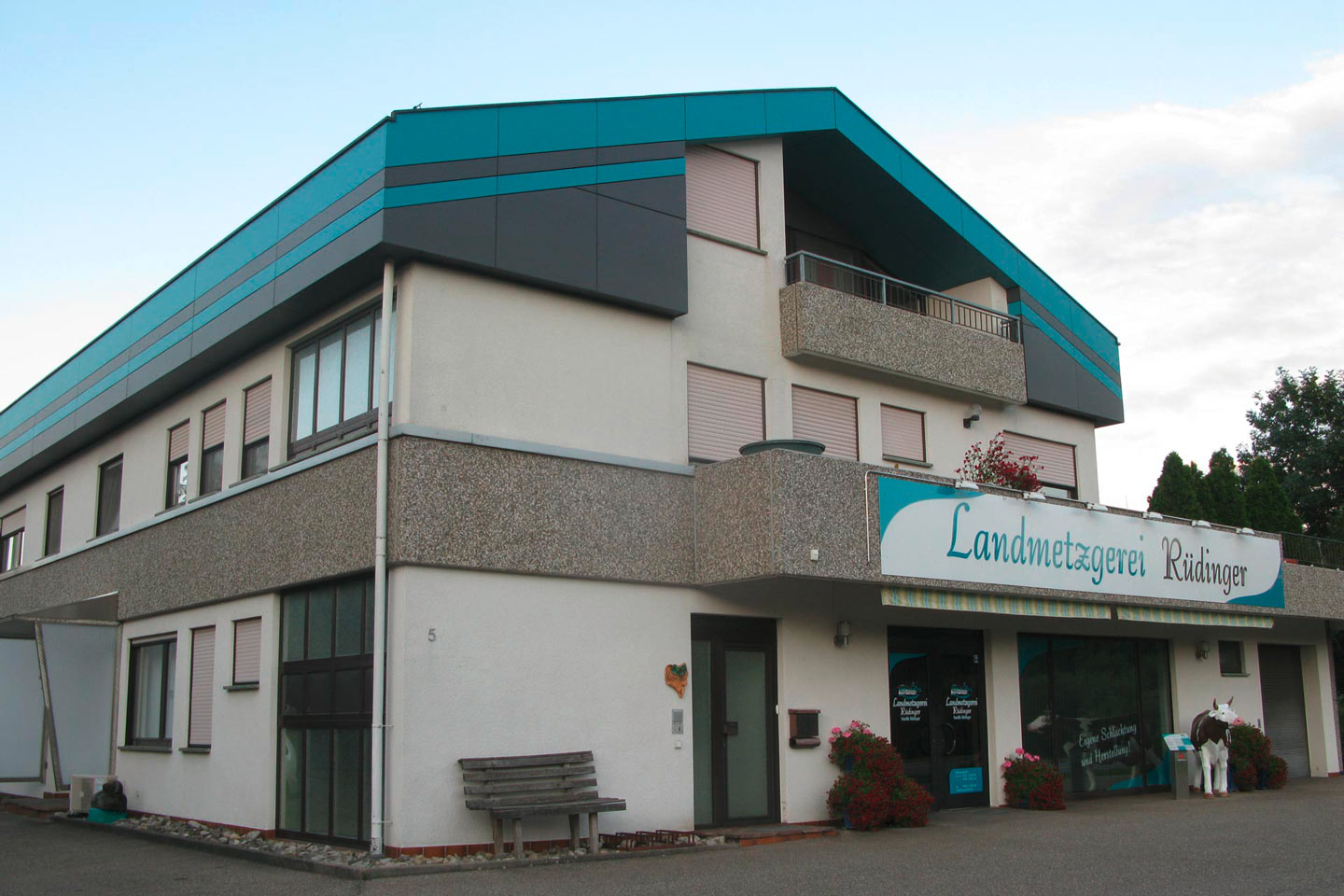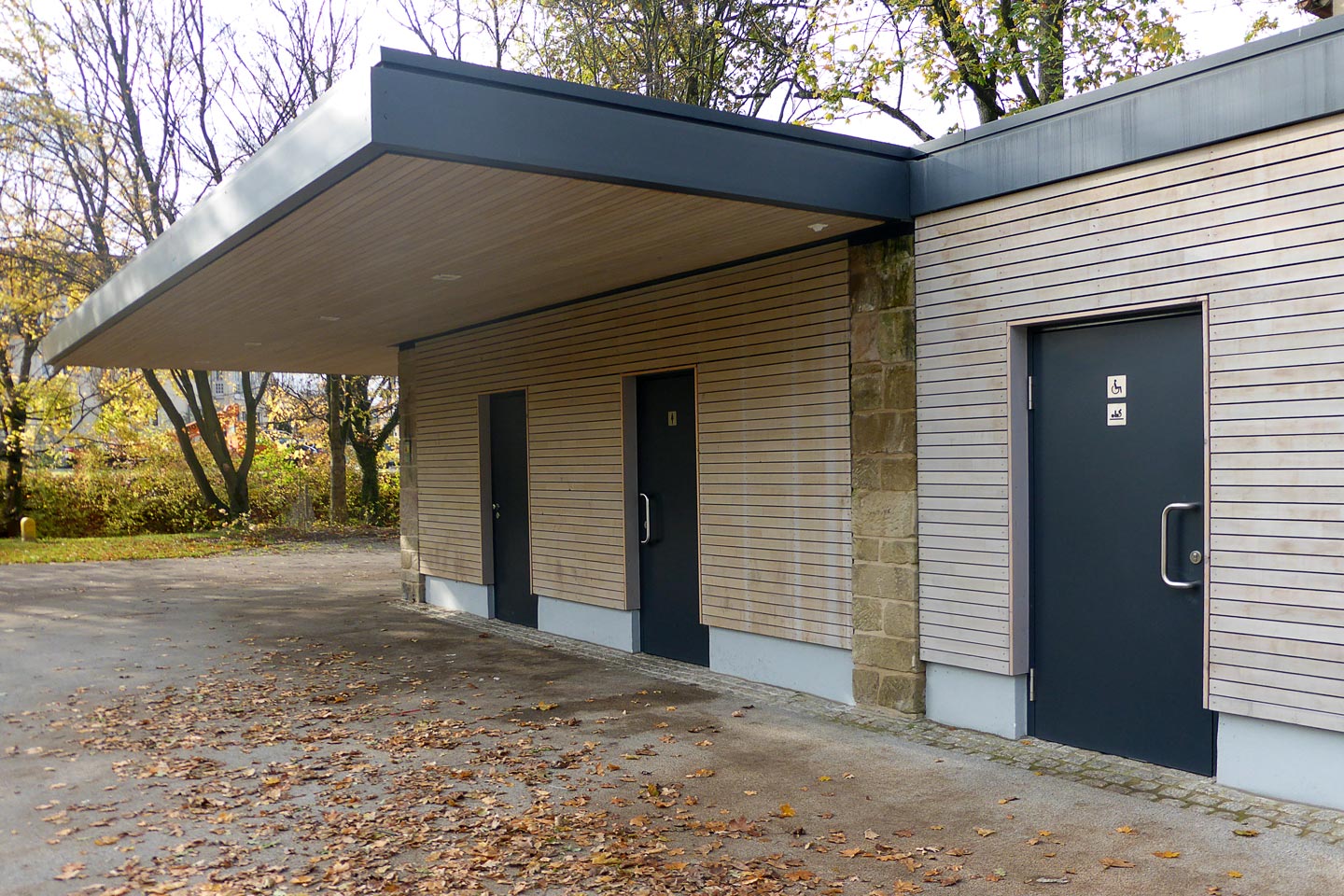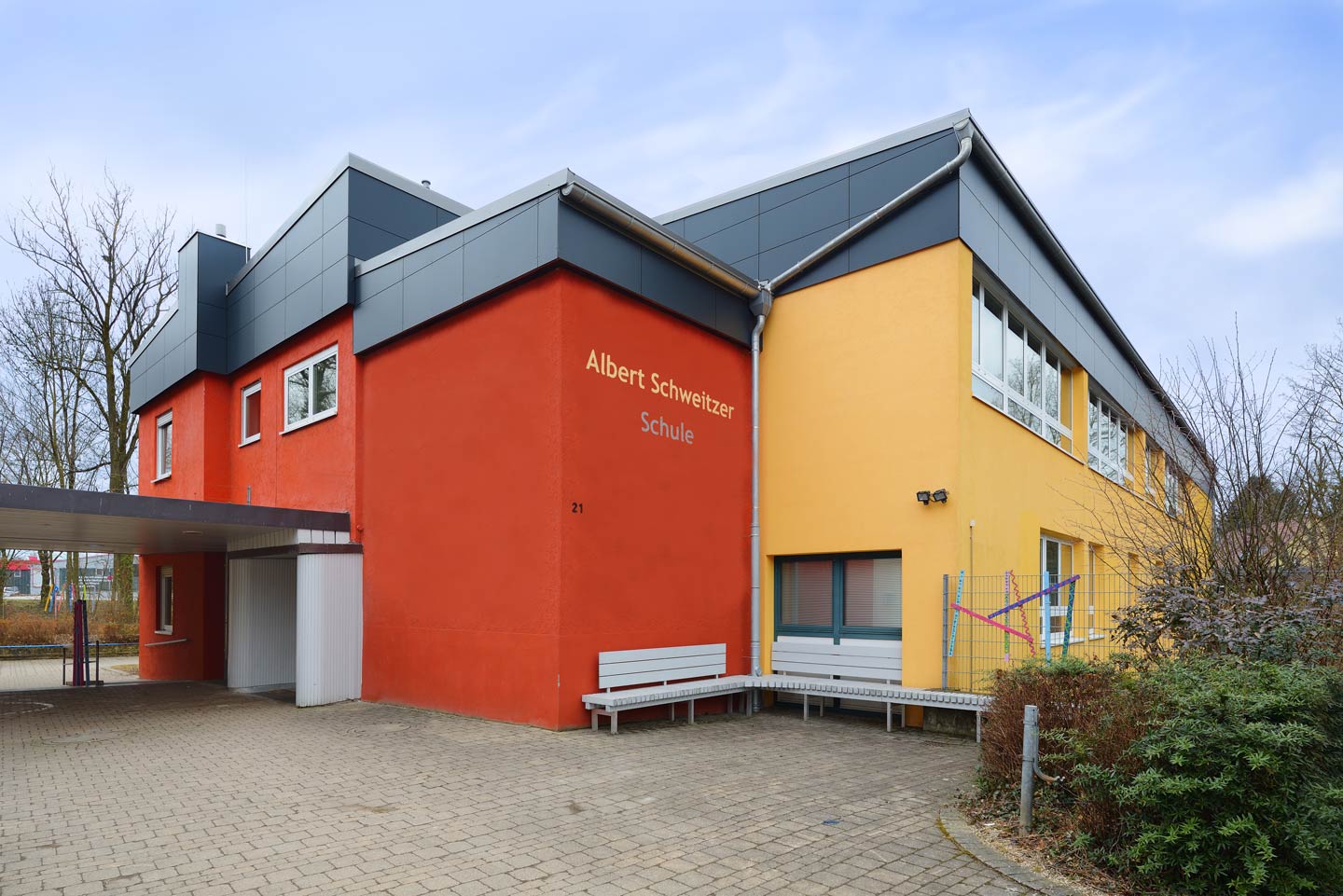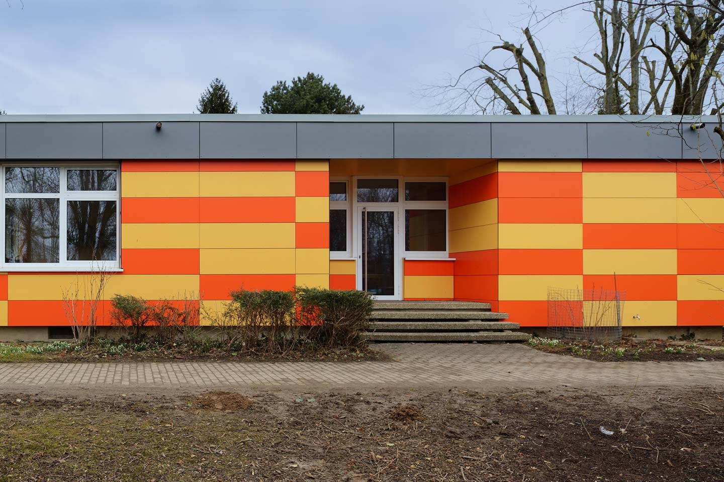 bestehendes Flachdach wurde durch ein Satteldach ersetzt, Gestaltung der Fassade mit großformatigen Fassadenplatten