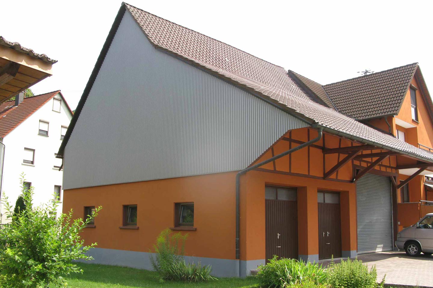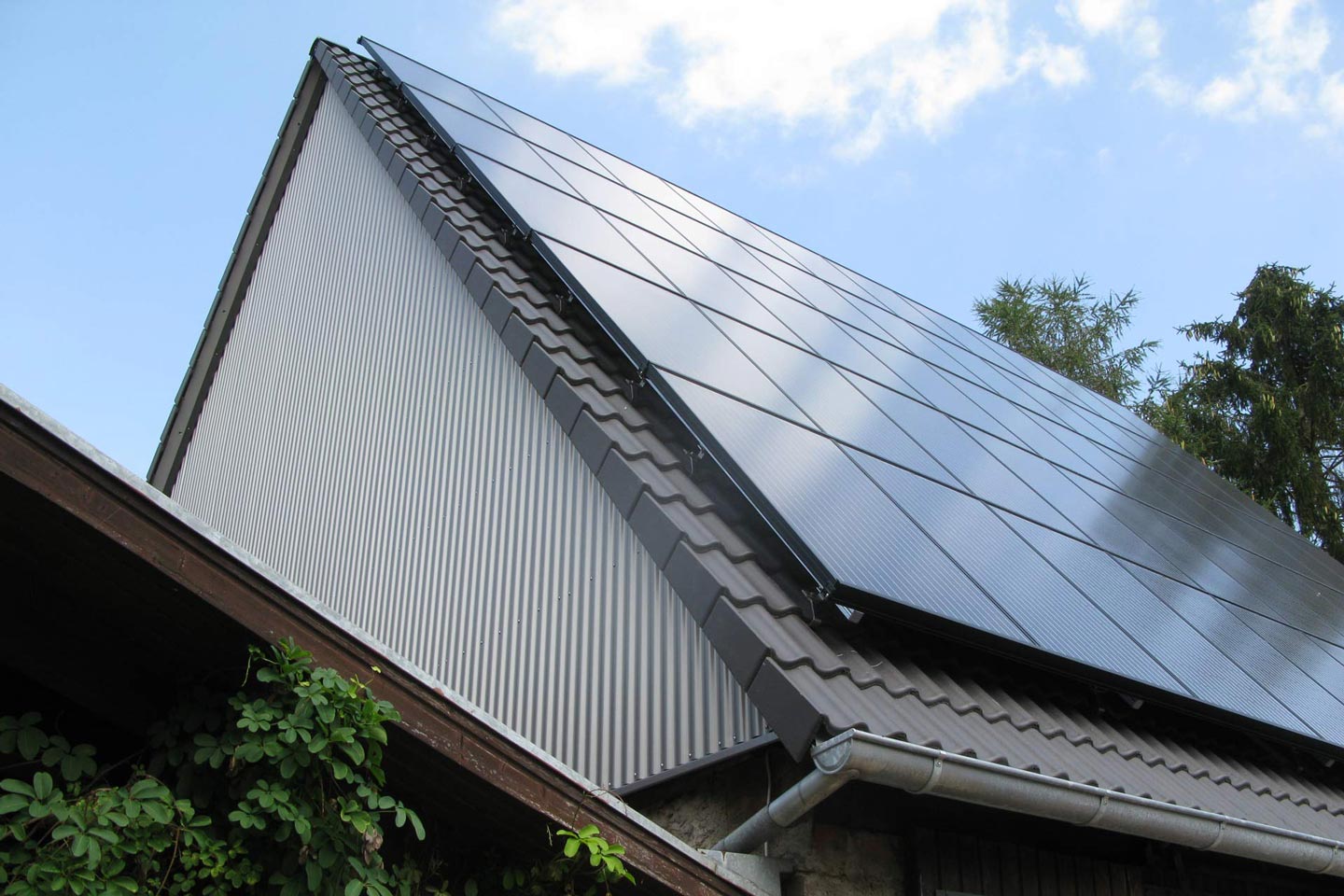 Dachsanierung mit Gestaltung der Fassade mit Alu-Wellblech